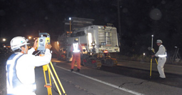 舗装工事の生産性向上、品質確保、安全性向上、熟練労働者不足への対応などの課題に対応した情報化施工を実施しました。使用機械はWirtgen社W2000、コントロールユニットはNIKON Trimble社製の自動追尾型トータルステーションを使用し切削速度等、手動時と同等の施工検証ができました。