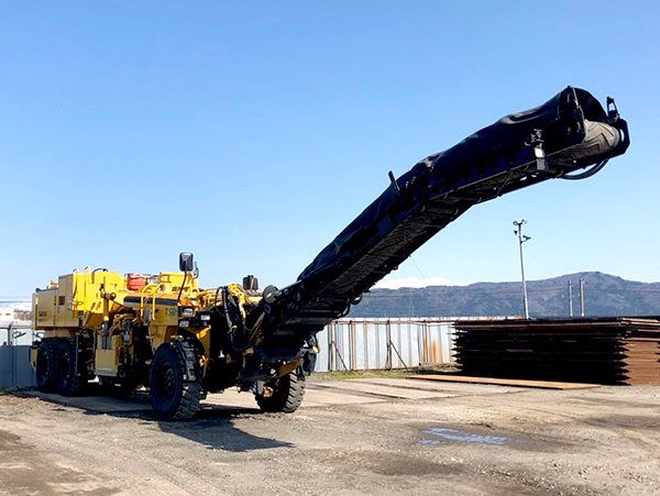 また、切削幅35cmの他に、50cm幅の切削機を使用し、より効率的な施工が可能になりました。さらにベルトコンベアを取付けることで、廃材積込作業の効率が大幅に向上します。(ベルトコンベアは脱着可能)